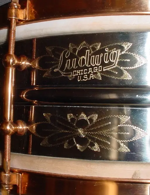 [B]1926-27 LUDWIG & LUDWIG 5 x 14 10 LUG/12 PT. FLORAL ENGRAVED (NEAR MINT) DeLUXE