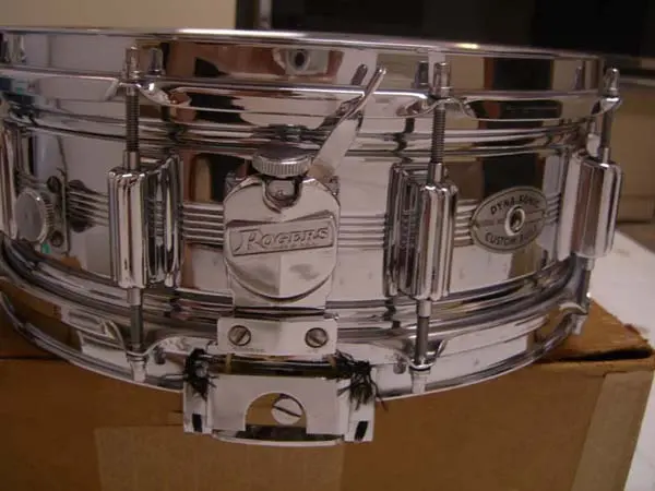 Rogers kit with snare mount on bass drum