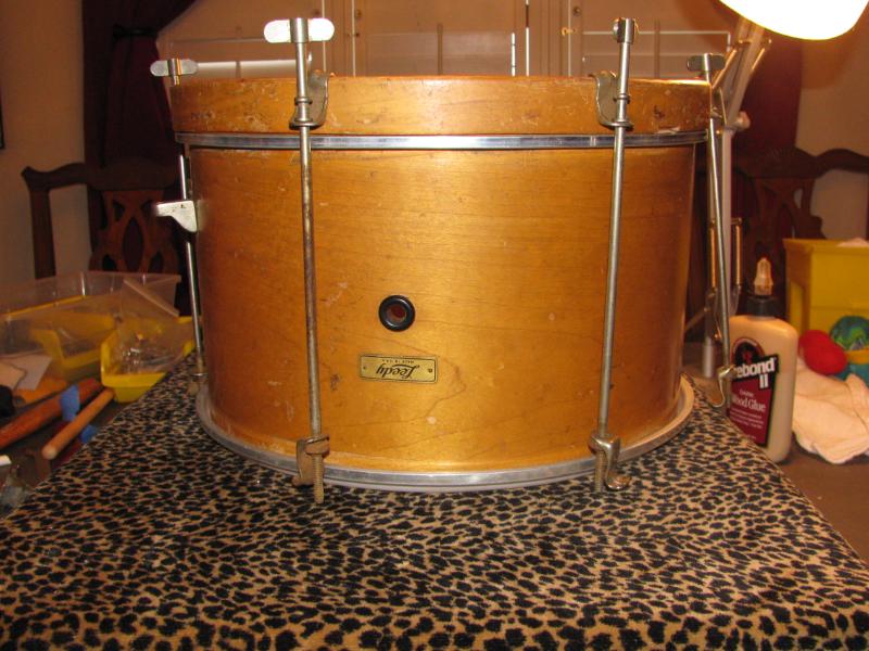 OK Y'all I have had this on a shelf for quite sometime now. I got it off of ebay a long time ago. Its a 12X7 leedy snare. According to the drum identification page, this is a 1920. The top hoop is broke. There is a bracket for the snare adjustment, but no snare butt, and no holes to indicate there ever was a butt. I can get a new hoop for about $35. How the hell does the snare work on this? Does anyone know anything about this drum?