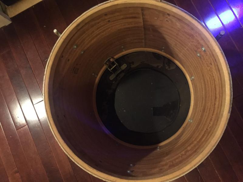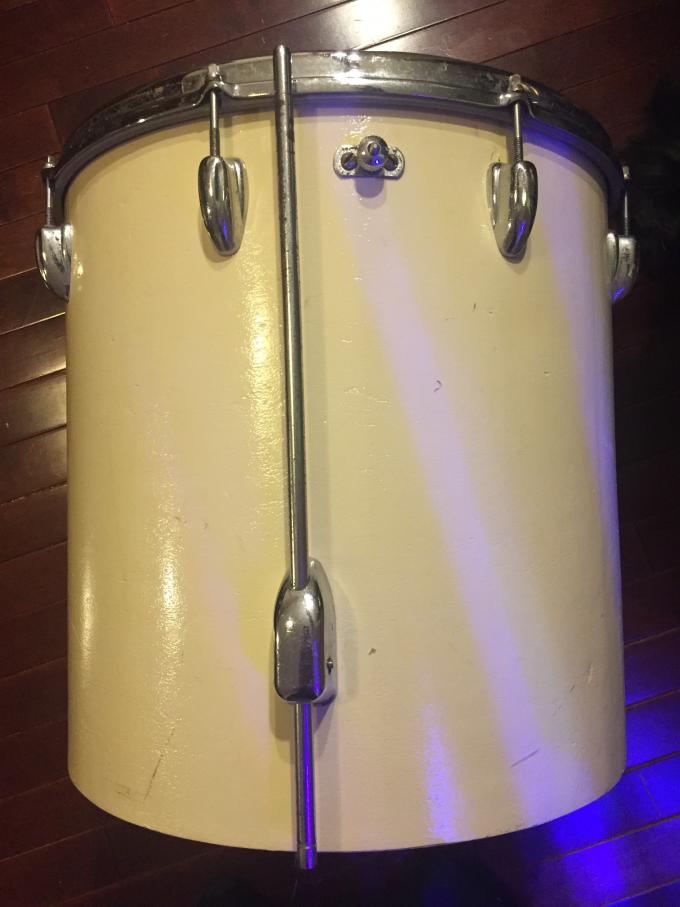 I aquired this accidentally so I dont know too much about it. Bottom hardware missing and holes filled, painted white. I believe it is a 3 ply. Drum is in good shape.