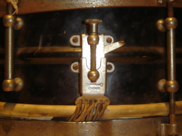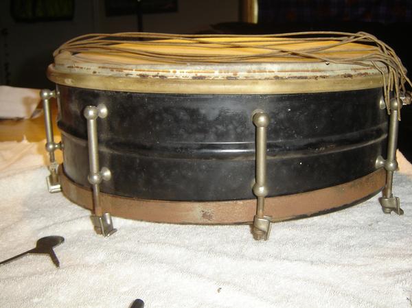 It has a Slingerland strainer stamped "Slingerland Chicago USA" but I know they didn't produce drums till way later. The drumhead is Calfskin from Amrawco (American Rawhide) it also says The Tilben Company on the snare skin. If anyone might be able to shed some light on this I would appreciate it. Thanks all...