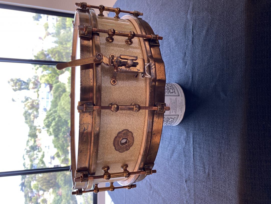 1928-34 SLINGERLAND 4 x 14 *BRILLIANT GOLD* TONE FLANGE/ARTGOLD ARTIST MODEL