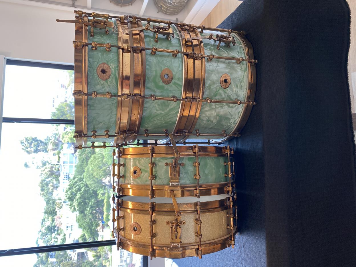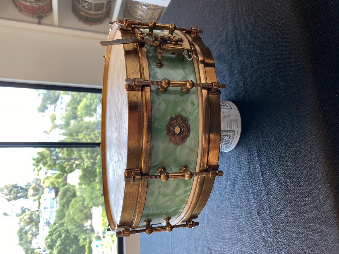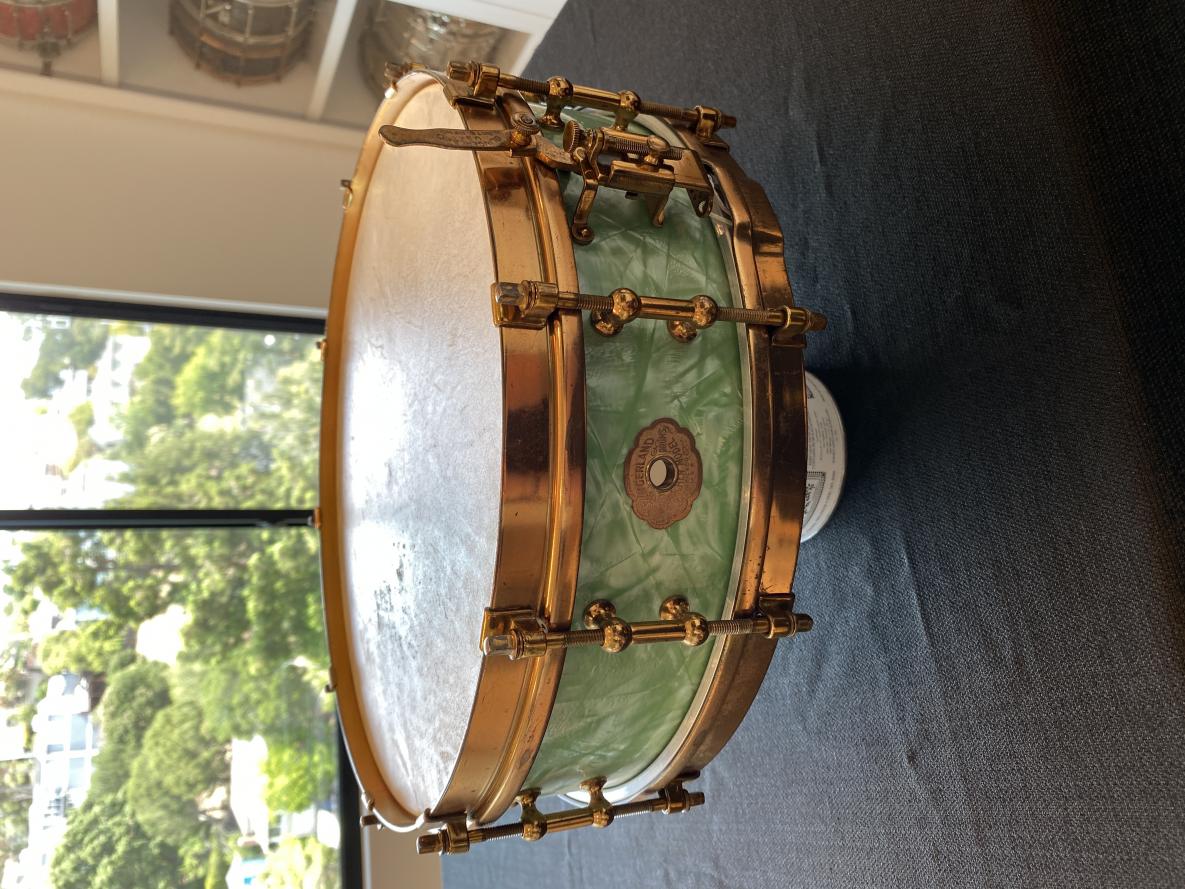 1928-34 SLINGERLAND 4 x 14 SEA GREEN TONE FLANGE/ARTGOLD ARTIST MODEL
