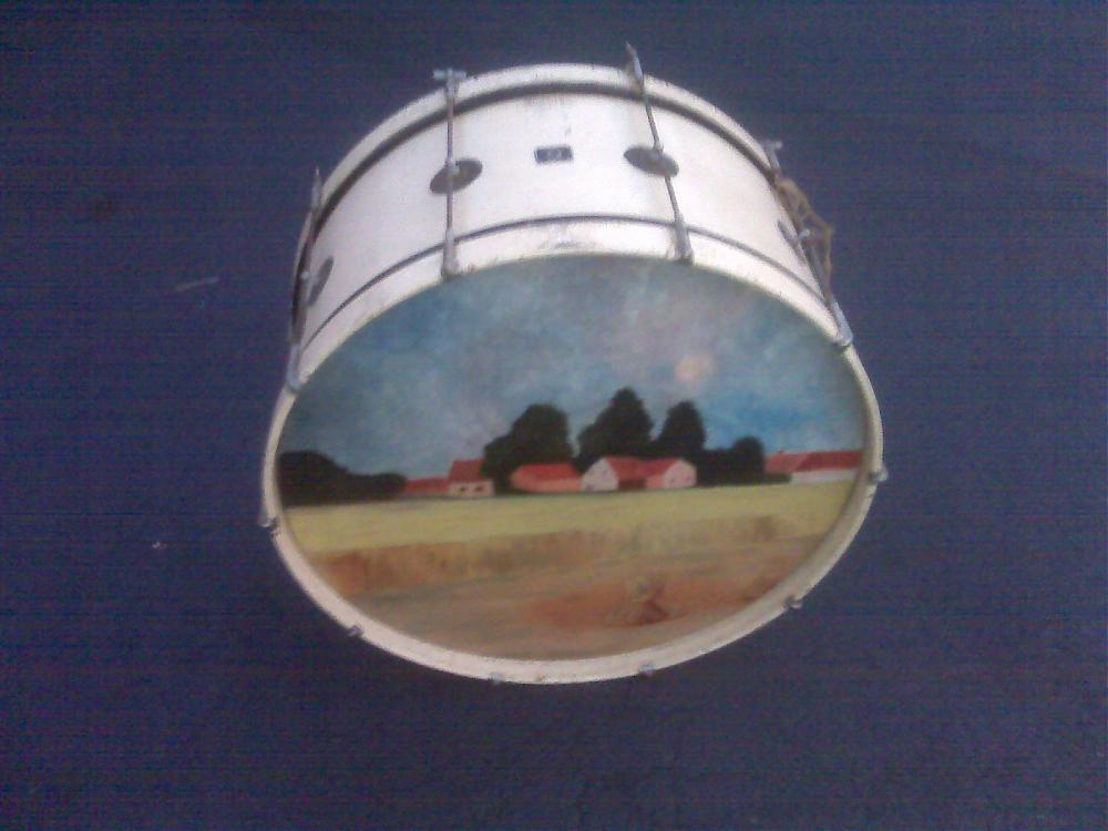 I have what I believe is a 1930's Ludwig Bass Drum. This one is in alright shape, but its had its years of use! Some unique specs with this one is the hand painted Bass Head which shows a farm scene. Very high quality painting, and its still in remarkable shape. It also has a lighting rig inside of the bass, with what looks like the original cord, I'm sure this was an after-market modification, but I know my Great Uncle was in an orchestra, and i'm sure thats why he had the light. Let me know what you guys think, and help me identify this model!