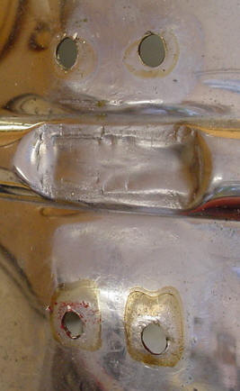 At first I thought that I had gotten ripped off but it turns out that I learned something new while cleaning this drum. It seems that the WFL Drum Co. chose to alter the beads (inside and outside) on their metal shells rather than "notch out" the single or twin strainers in order to make the them fit onto the beaded shell. So I take this drum apart and see the altered bead on the outside and inside, I immediately got out my 1930s nob All-American Swing Model and my 1930s 7x14 WFL cob Twin Strainer Model and voila, the same shell/bead alterations are on both of those too! I never really paid attention to this detail before as there were no extra holes or any other anomolies on these drums so this was a pleasant new discovery for me...The photos say it all.