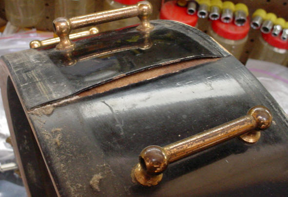 This drum is all original but still had a few issues. The black enamel shell was split open at the seam but my good friend Al Schneider (The Drum Doctor) was able to fix that right away and the black enamel needed only a basic cleaning, polishing and detailing. The Artgold hardware was in very good shape but was very dirty with a small amount of tarnishing so I did my normal cleaning and restoration on the hardware.