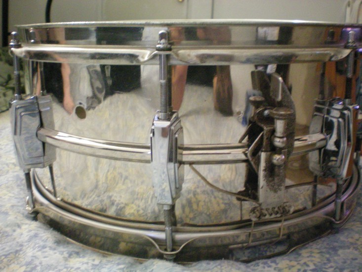 I found this puppy on C.R. San Diego listed for $200.Noticing a familiar looking square center bead running around the middle of the shell...and needing parts i took a chance.With 20's era black beauty,sealed,returning bearing edges,8-lugs,NOB hoops,wfl can opener throw,and pure-sound wires,this baby sounds soooo KILLER!!! SUPER HAPPY!!!Laughing H!!!