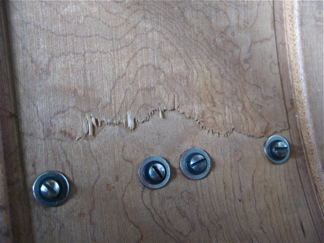 This is a 40's RK 7"X14" . If you look closely near where the bottom of the glue rings end you will see an area of about 1/4 " wide that circles around the entire diameter of the drum. It 's on both the batter and reso side. It looks like the shell is ever so slightly thinner at the top and bottom of the drum. Did they router out 1/32 of an inch or so where the glue rings are glued? I've never removed a glue ring so I have no idea what's under there...... It looks like a ply lines the interior but I know this is a solid shell. Also there is what appears to be a seam that runs across the depth of the drum. My 50's RK 5.5 solid shell looks nothing like this. I have not seen any other RK interiors so I have nothing else to compare too..... I don't think this was modified but who knows....... Any thoughts?