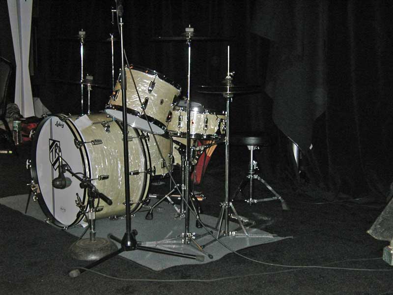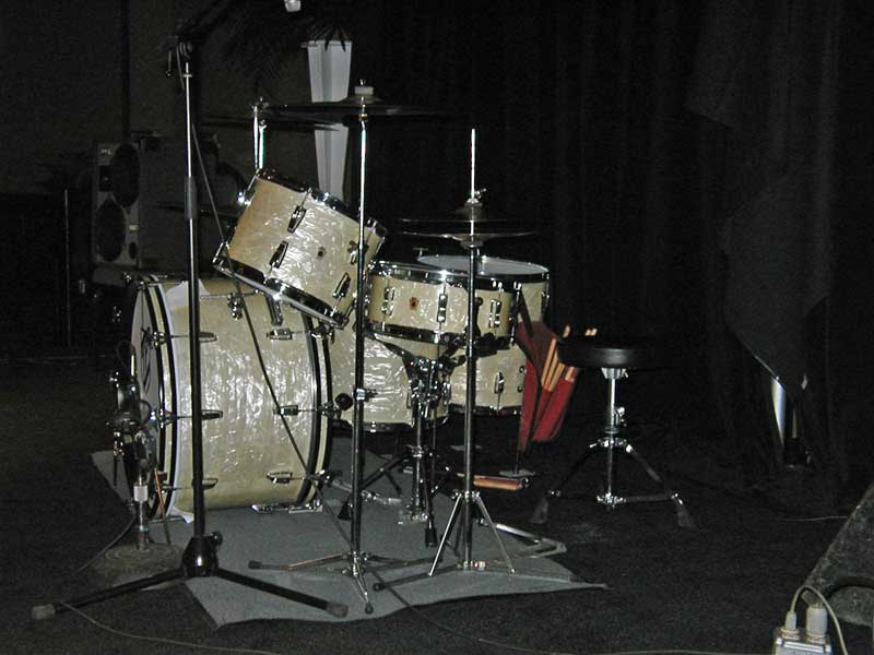 Harrison: I picked these drums up back in March of this year. Then I spent the typical amount of time cleaning/detailing, etc... including repair/installation of mounts/hardware, etc. The interior plies/shells were quite stable with regard to glue/rings/seams, but had to be dressed/cleaned, etc. Both bass drum hoops had to be completely restored as they were trashed... but here they are, and they are the originals including the WMP inlay. I sent them out to my good friend Jack Lawton, who is without a doubt, one of the best around, if not THE best! Jack also hand painted my front bass drum head with the norm of the period logo/shield. There was no vinyl back then... everything was painted!