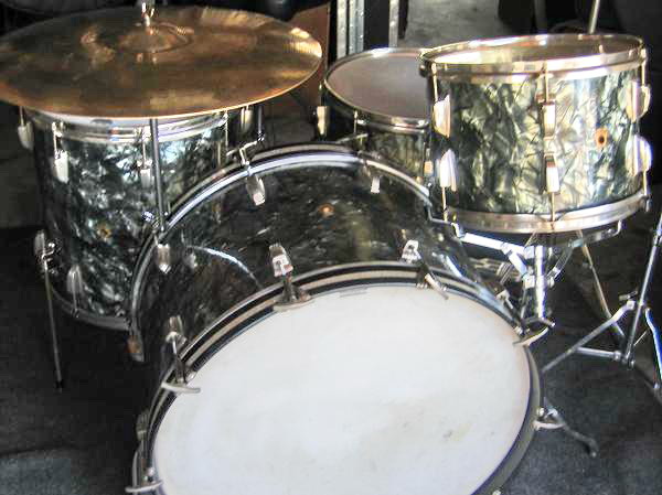Im reading it's a 1 year 1949 "Ray McKinnley" in the Rob Cook Ludwig Book!!! although not pictured are the bongos,never the less i got'em!!! Im also a total sucker for this BIG PATTERN BLACK DIAMOND PEARL! to me its the best looking stuff around,seems like eveything else i burn out on,but not my BPBDPWFLLaughing H