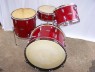 Here is my latest Pearl pickup a geuine no frankenstiened vintage 1950's kit with original calf hide heads (or skins as they were called ).note the badge oval slightly larger than the 60's version with straight lettering , not the script style in the oval.The rack tom mounts onto the bass drum hoop (ala 30's 40's ) , spring loaded floor tom straight legs , single flange rims alround.sizes are typical English drum sizes (Premier , John Gray ), 21 1/2 bass, 13 rack , 14 snare, 15 1/2floor tom.Bass drum has triple reiforcement hoops all others have double reinforcement hoops.I tried to replace the calf hides with palstice heads , but because the shells were so thin they started to collaps under tension .this kit was found a couple of years ago in the back of a bowling joint in Toorak Melbourne, Australia.