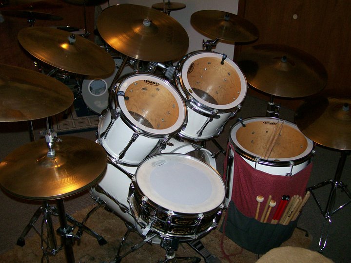 The 1990 Arctic-white Classics w/ long lugs was ordered new for me from my parents when I was a freshman in high-school. As a kid we played them in the pep-band during HS and college as well any other gig we were asked to play. Mom and Dad were always there to be the "Roadies". Over the years I added more sabian HH, AA, and AAX cymbals and Modular hardware to the original kit, and for my 16th birthday the folks gave me a Ludwig Limited Edition engraved Black-Beauty #40. Twenty years later the kit still sounds and feels as good as when it was new.