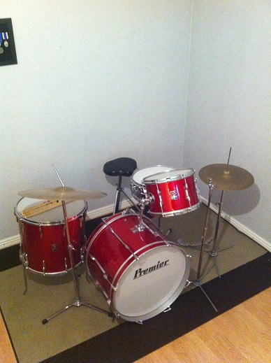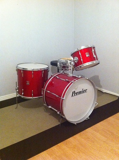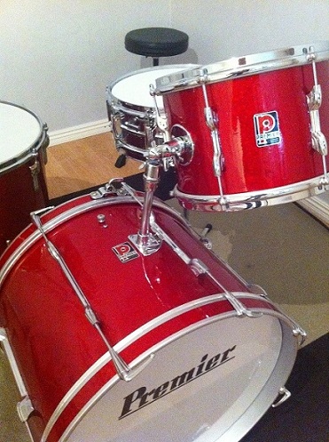 My dad happily agreed and here is the end result. All the drums has been recovered with Delmar Red Sparkle, the same color as original. ALl metal items has been removed, cleaned, oiled and polished.