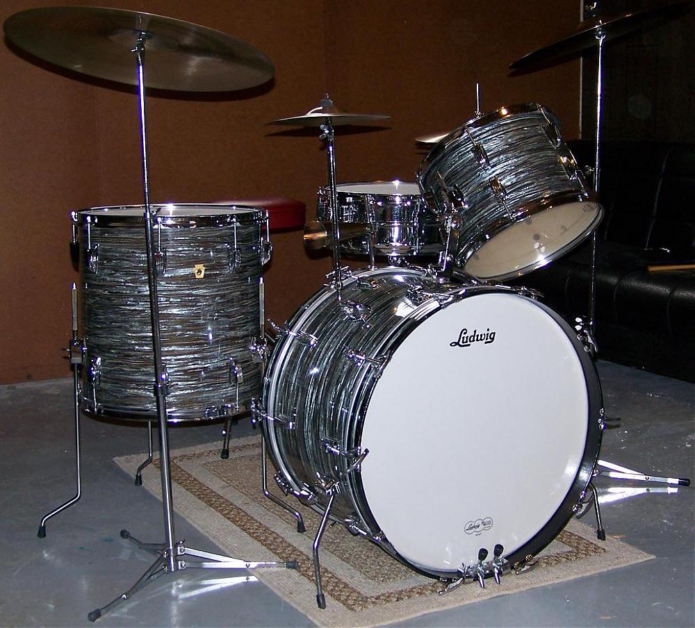 This is my 1966 Ludwig Super Classic Oyster Blue Pearl 22/16/13 and a 5x14 Supraphonic Chrome Snare.
