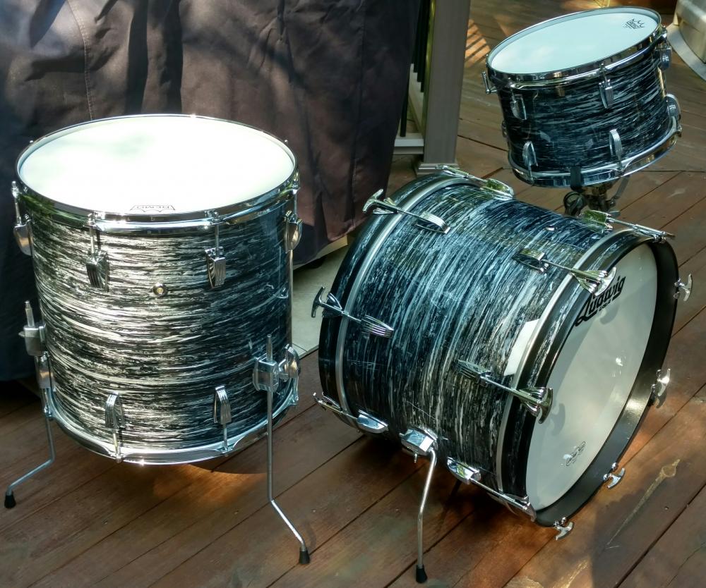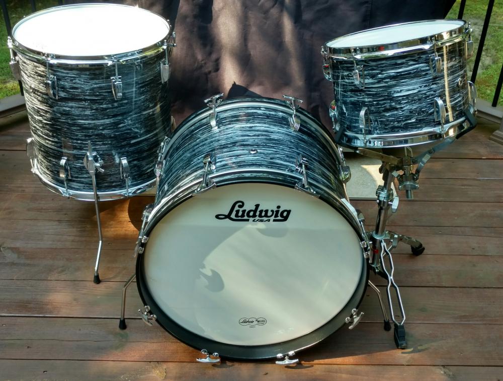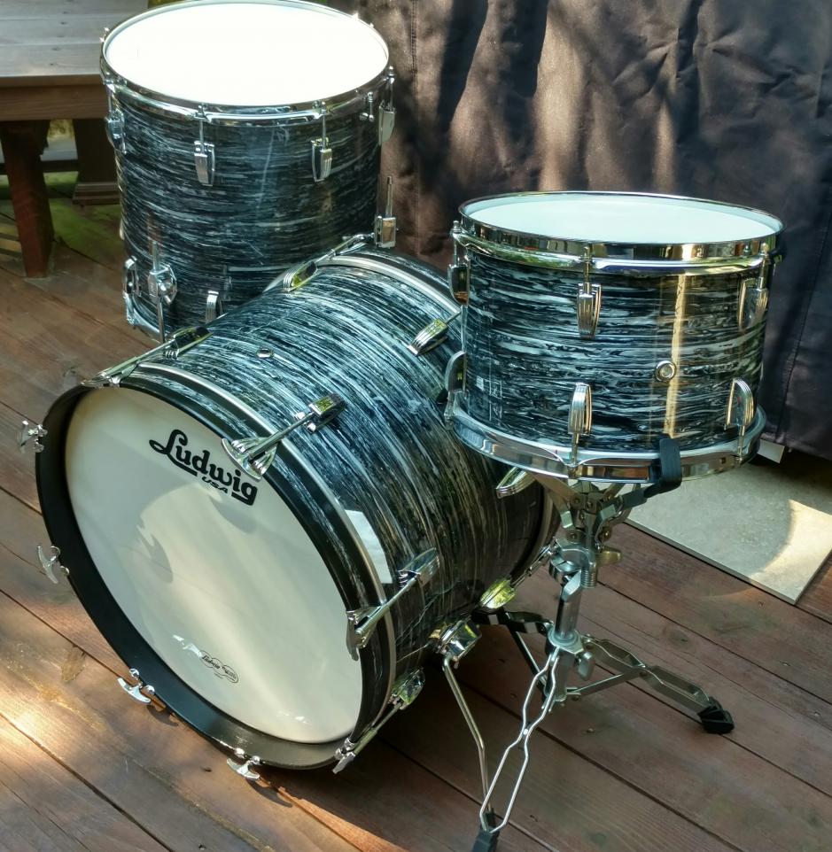 For your enjoyment, here is my new, 50 year old Ludwig Super Classics. For the folks not following my thread, I found these in the back of an old shop in Delaware in need of a TLC. They had been spray painted black and were with some other goodies including a 70's Dynasonic. While the badges were missing, as well as the rail mount, and there were some extra holes drilled into the top of the 20x14 bass drum. Needless to say, I needed professional help. After removing all the hardware, I sent the shells to Precision Drum for a rewrap in 60's Oyster Black, filling of the holes, and a recut of the bearing edges. Some 30 or so hours of cleaning chrome, a few new rubber feet, all new heads, and wella! I present these mid 60's(12" tom has date stamp of Sept 8, 1966) Ludwig Super Classics, 12x8, 16x16, and 20x14 Bass Drum. They sound amazing!