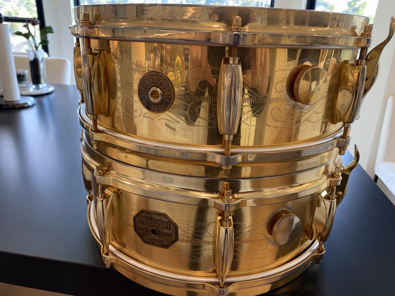 Here are a few more that I never did an article on. I am not a Gretsch collector and rarely dabble into the 1960s-70s but I love gold plated snare drums.
