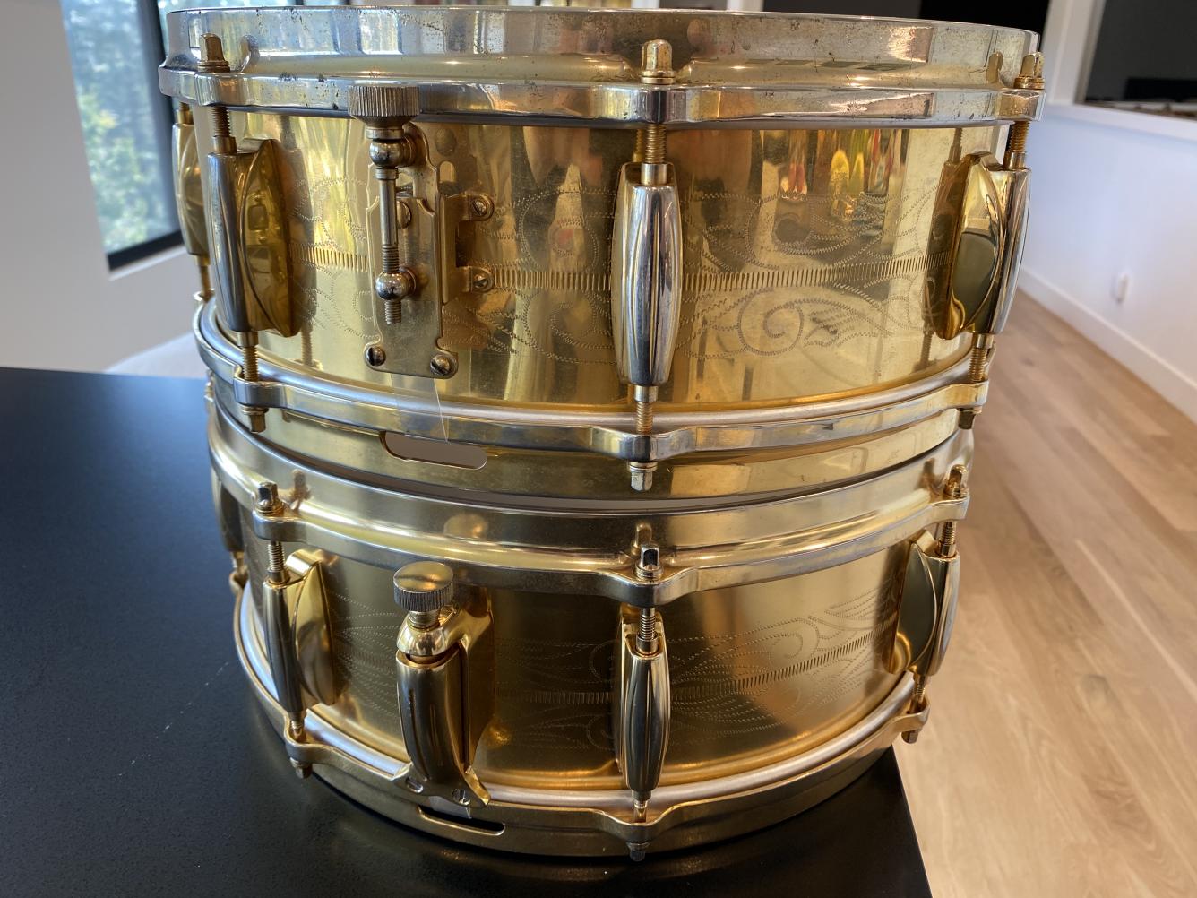 A thank you to my good friend Steve Maxwell for the brief history on these drums: “The gold Gretsch snare was circa 69-70 and done right on the cusp of the transition from Round Badge to SSB.