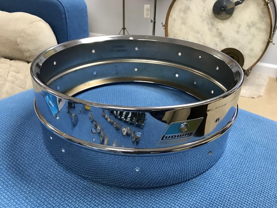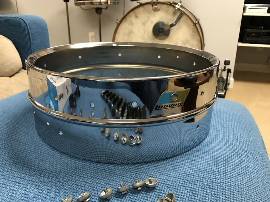 I knew from reading about the throw off that I would have to tap holes in the snare butt to make it line up with my Supraphonic hole spacing. The holes are already on the butt so I used an 8#-32 tap and it worked well. I did not drill the holes any deeper and this caused the next issue to be resolved. The shortest screws that came with the P88AC were too long to secure the snare butt and the P88AC only comes with one pair of grommets to install. I chose to use the grommets on the throw off and not the snare butt. I ended up getting some 8#-32 screw covers and cut them down to make a grommet. This worked. I did have to enlarge the holes in the drum slightly to allow the 8#-32 screws to go through the shell. With that solved I went on to cleaning up the lugs and the shells. I found some 70's Supraphonic tension rods on eBay that were in very good condition. I bought new Remo Ambassador coated batter and hazy snare heads and a Puresound 24 brass snare wires.
