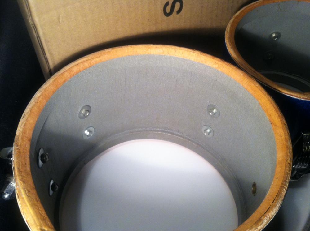 Maybe a few of you saw them, maybe not. They were staged well for the camera. The badges looked flat, the interior looked to be granitone and I assumed the rims were original. The auction listed as "authentic". I had asked about extra holes and was told they were very clean drums. I did notice that the mount screws were not original but upon receiving the toms the badges were bent and glued down, the rims don't seem to be Ludwig but what really has me questioning these is the interior. An almost flat grey. Not granitone which is what I perceived it to be in the auction. Any input is helpful.