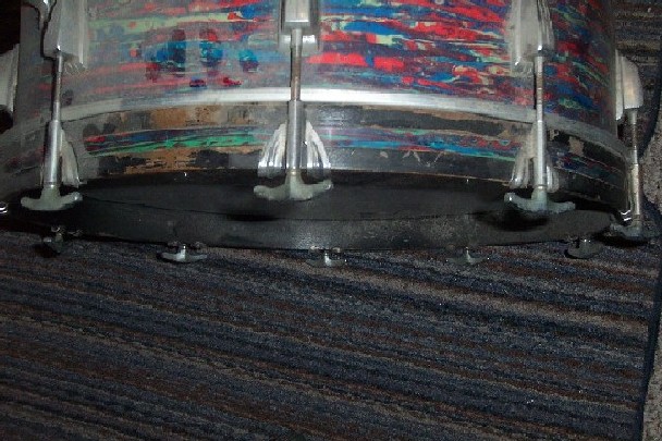 I have only one original bass drum hoop with its original psychedelic bass drum strip. I did not know if it was possible to remove the strip to put onto a better conditioned vintage bass drum hoop from the one bass drum hoop that I have. The bass drum hoop that I have is cracked really bad from the speed king bass drum pedal where it attaches to the hoop shown in first attachment and the hoop is in bad condition has lots of paint rubbed off, pealed off etc. around it as shown in second attachment.