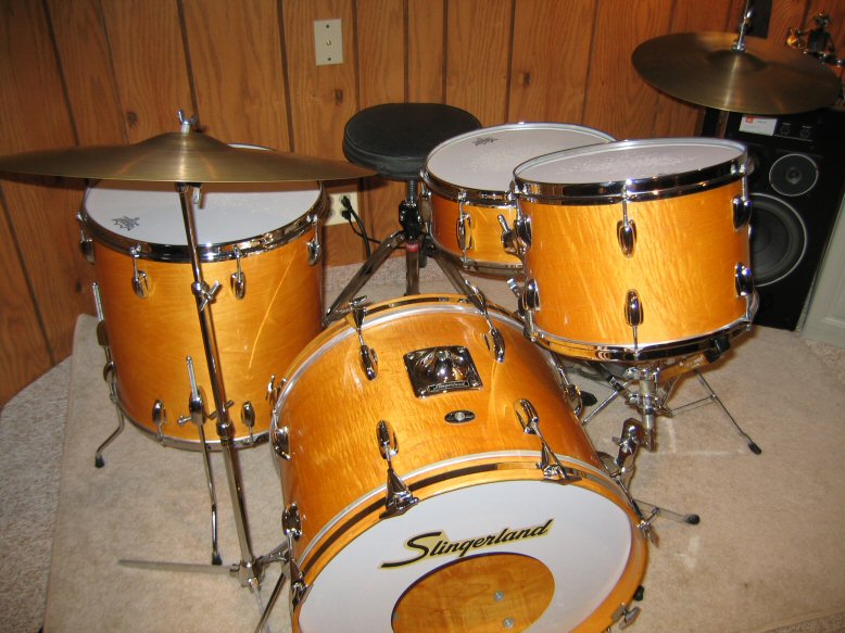 That is one seriously beautiful kit. If you are interested, I have a kit pretty much the same (only a darker stain) that I've headed with calf. If you are curious about the sound, check 'em out. They are unbelievably nice sounding drums. To be quite honest, I like the lighter maple look over the darker mahogany. Isn't that typical.