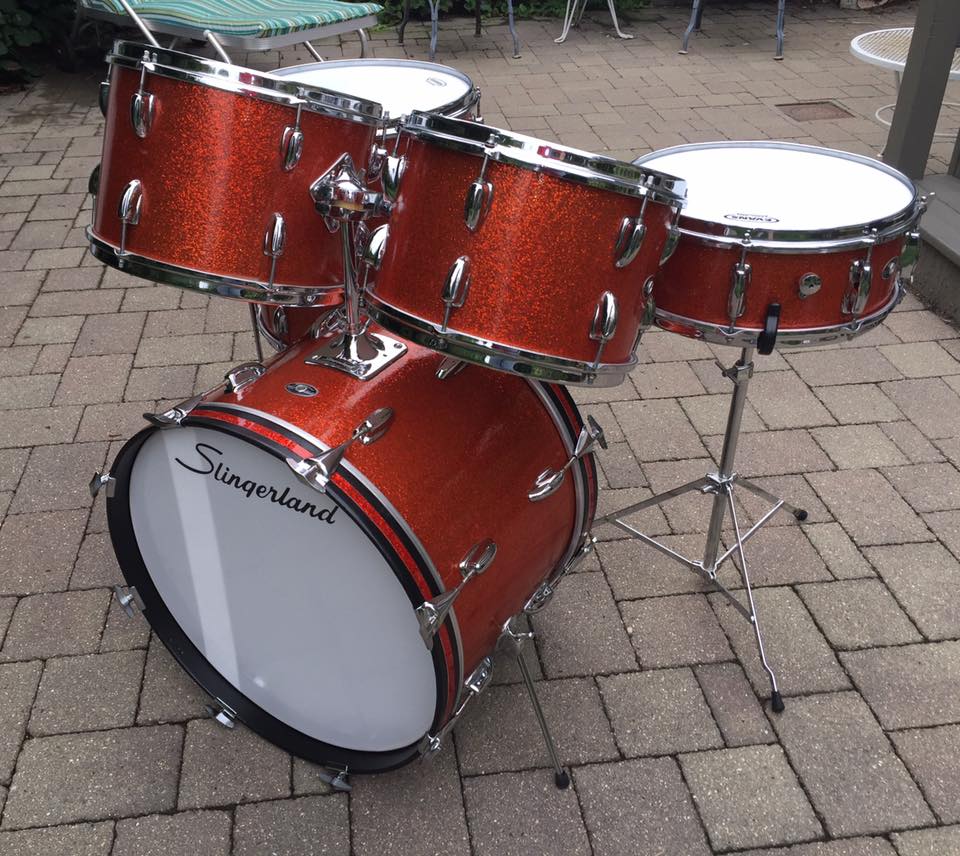 1973 Slingerland Sparkling Orange Pearl kit with matching snare, just cleaned up!