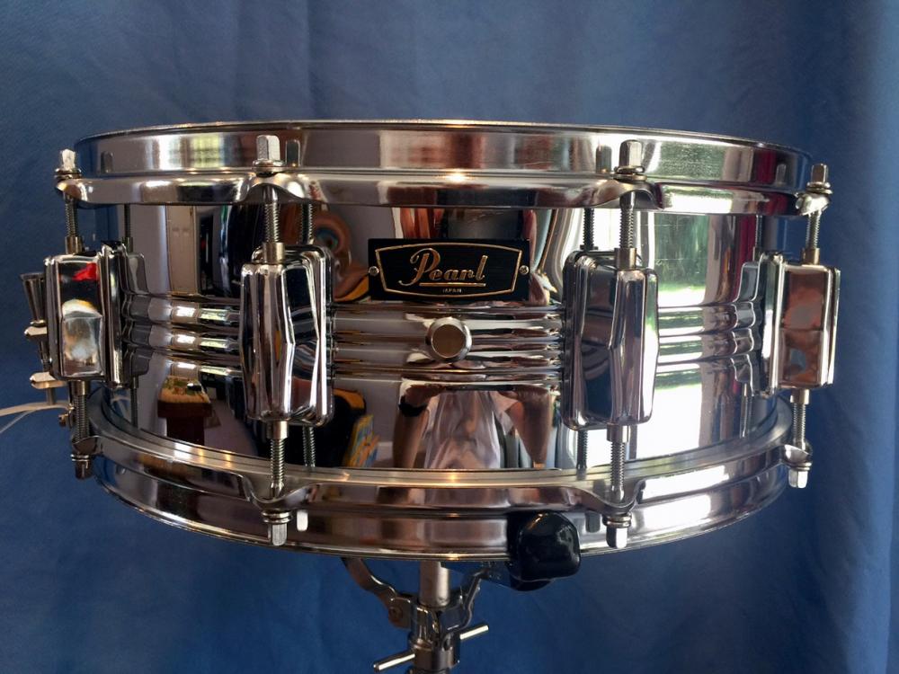 Pearl B4514 ... 5X14 COB shell with 10 lugs ... Billy Gladstone style throw w/adjustable butt ... tone control. This drum is incredibly versatile in that it can function beautifully in ALL STYLES of music contingent on one's tension/tuning preferences. Everything from jazz, to The Police, to even Funk and R&B, this drum delivers. A HEAVY COB shell is part of that equation! I have TWO of these!, so I am cutting this one loose. Condition is NEAR MINT as the pics will show.
