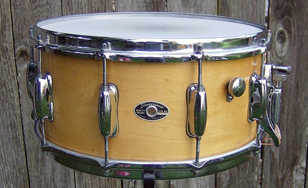 One of the first reissue drums made by Slingerland. Single ply maple shell; TDR strainer; 6.5x14; 10 lugs.