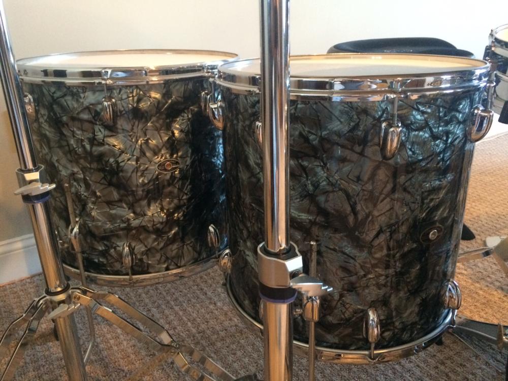 One is a Black Diamond Pearl. 22" BD, 13" Rack, 16" & 18" Floor. The BD, Rack and 16 are 60's, the 18 is 70's. It will come with a 20" matching BD matching the 13" in year. That's 5 drums.
