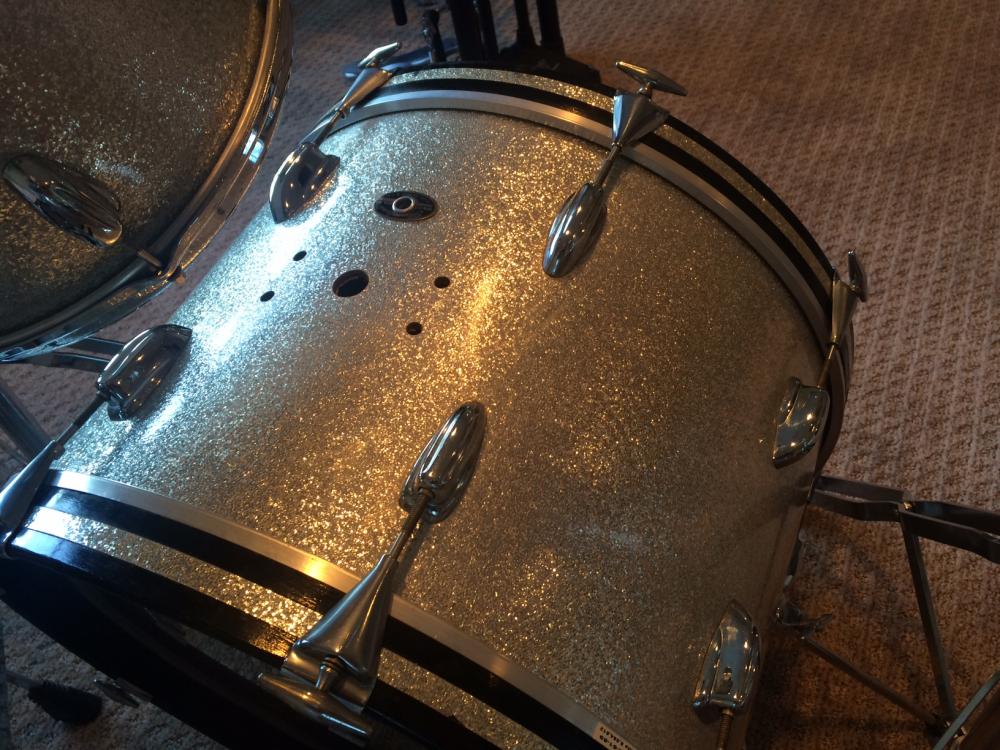 The other is a Silver Sparkle. 20" BD, 12" Rack and 16" Floor. The BD is 1960's, the two toms are 70's. There is a matching 12" Tom shell that matches the bass that comes with the kit, but it was repaired.