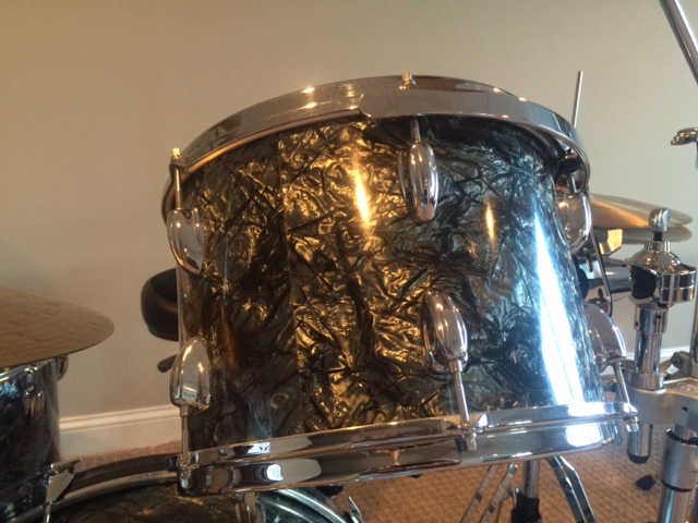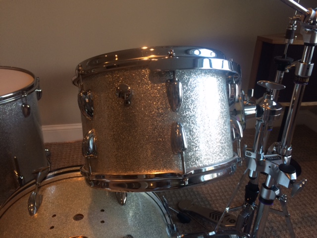 The silver kit also comes with a matching 1967 12" tom shell that has been repaired on the inside but looks and sounds great. This is going with the kit for free.