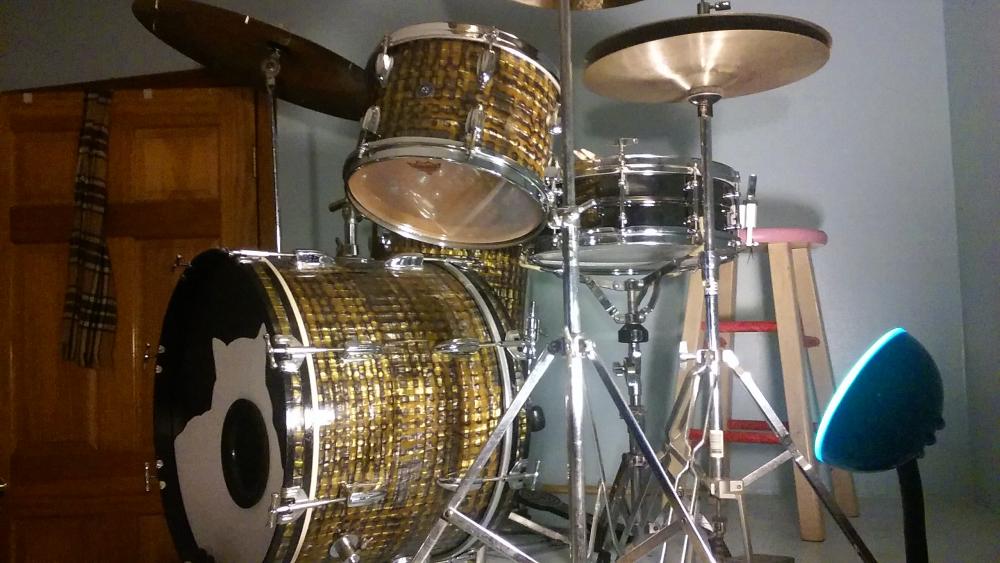 Here's a Zim-Gar 3 ply 20/12/14 with 5x14 snare. All original except for heads and top snare hoop.