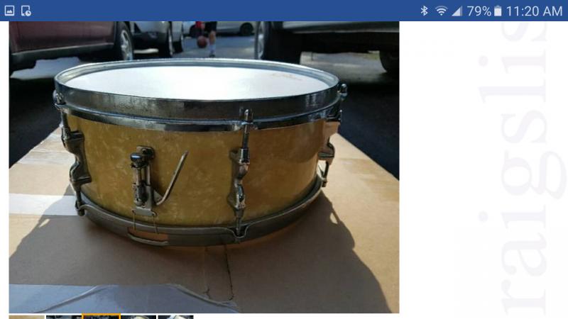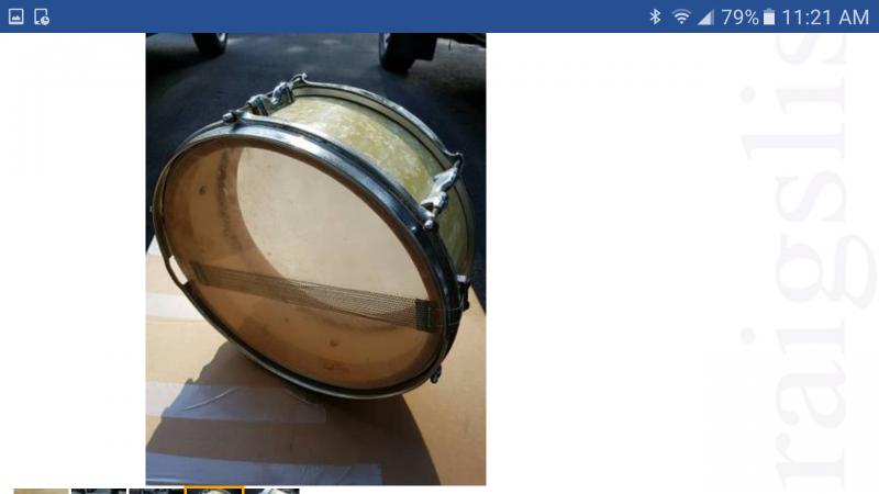Overall the drum looks dirty from the pictures and the hoops and throw off chrome look spotted with rust but it looks like it is all there.