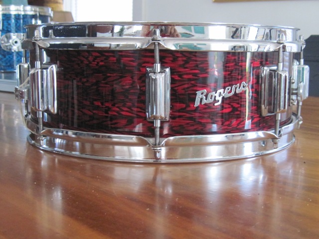 Red onyx wrap that is probably as close to your original as you are going to get is available at Precision Drum Company. Attached is a snare drum recently refinished in that material. I received this drum as one that had already been done in a Ludwig pattern black diamond pearl. It is much closer to the look of an original Rogers drum now with this wrap. It is very close to my Cleveland red onyx snare that I found a few months after doing the rewrap.