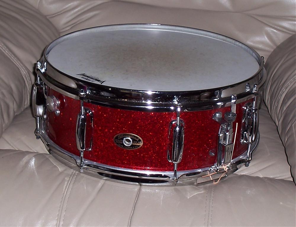 I've got a 60s red sparkle Slingy Hollywood Ace for sale. I'm asking $250 (+ship). The prior owner mounted a Ludwig strainer on the shell but did NOT drill any extra holes to do so. I believe that I've got a Slingy Rapid strainer that I'll include with the drum along with the Ludwig strainer. The wrap's in excellent condition. The drum's got the Black & Brass Niles Badge (SN 194841) and original tone control. I believe that the bottom rim is an original Slingy COB stick-saver. The batter side rim is NOT a COB and I'm not 100% certain that's it's an original stick-saver. It may be a copy. The snare wires are Pearl. Interior shell's got the "chocolate milk shake" paint. If you'd like to see more pics drop me a PM and I'll get them out to you. THANKS for looking!