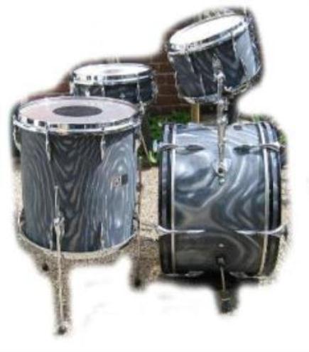 No kidding! Beautiful finish. I'm really tempted on this one myself. I had a set of turquoise satin Sonors just like these a couple of months back but I let them go because there were too many missing parts... this one is A-OK.From what I can tell from her descriptions, there is one A Zildjian cymbal and A Zildjian hats, and one large Paiste Stambul cymbal... not sure what the little cymbal is. Interesting tray mounted on the HH stand - anyone know if that's a drum thing, or just something someone rigged up themselves?Everything's included with this kit - cymbals, hardware, the Sonor kit, the Pearl fiberglass concert toms and the Keystone Supraphonic... somebody make an offer!