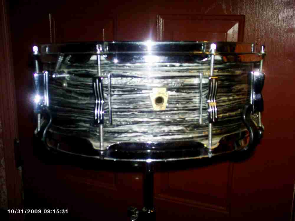 My 1965 Ludwig BOP snare is much like those BOP Ringo's selling for big $$ on eBay. It's an 8 lug so I think it's worth more than a 6 lug, but not sure; there are some debates out here about value and # of lugs. It's 5 1/2 X 14, all original parts & wrap. Not sure whether it's called Jazz Fest or Pioneer. Thoughts??
