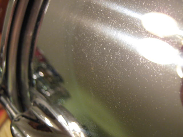 There's light acne on the chrome finish of the shells.... I polished a section on one tom and most of it cleaned up well.