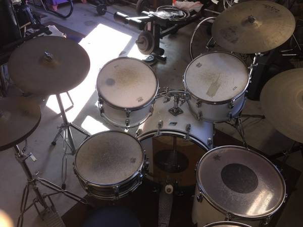 Photos attached. Any advice on what to look for? Models of interest? This does not look particularly valuable to me, but I'm the guy who just bought a badgeless, MIJ Slingerland :). I'm guessing the cymbals are worth as much as the drums.