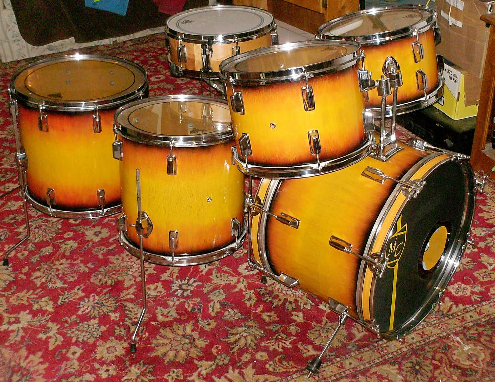 This is my son's first kit.12/13/14/16/20. Pin's/g1's, all tuned wide open.Sound like a dream.Hand bursted with water based stain topped with 12 coats of laquer.