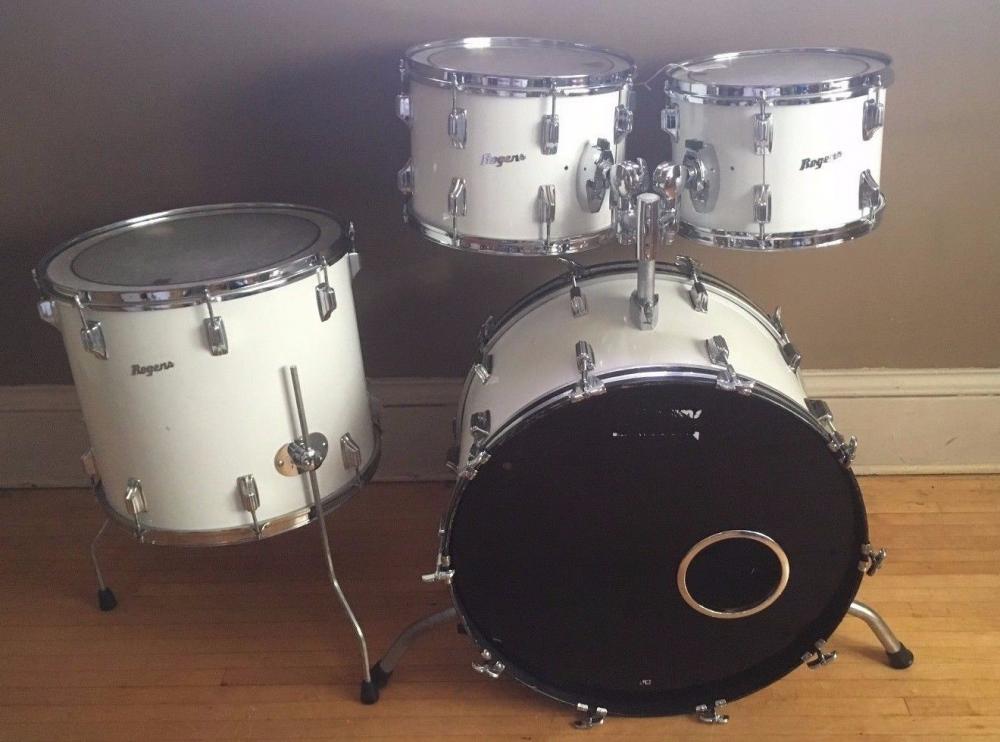 24" bass; 18" floor tom; 14 and 13" rack toms