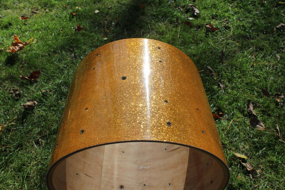 I just finished stripping the black paint off of a beautiful 16x12" WFL floor tom shell in gold sparkle... Not exactly sure of the age since there's no badge, but I'm 100% sure it's a zephyr lug drum.