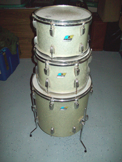 I've got a 5 piece silver sparkle 1971 Ludwig kit that I acquired used (and cheaply) about 25 years ago. It was pretty raggedy already then, and I'm not a drummer by trade, so I set it up in my basement but never did much with it. Lately I've had an opportunity to play a little more, and have decided to fix them up. I don't think they're worth restoring to mint condition, but I would like to make the set complete and whole again. And I have enough appreciation for vintage things in general that I'd like to get them as close to original as possible, even if that's just in "good" rather than "flawless" condition. I've been lurking on this forum a bit and have found lots of useful info on cleaning up and basic restoration already, and for that I thank everyone.