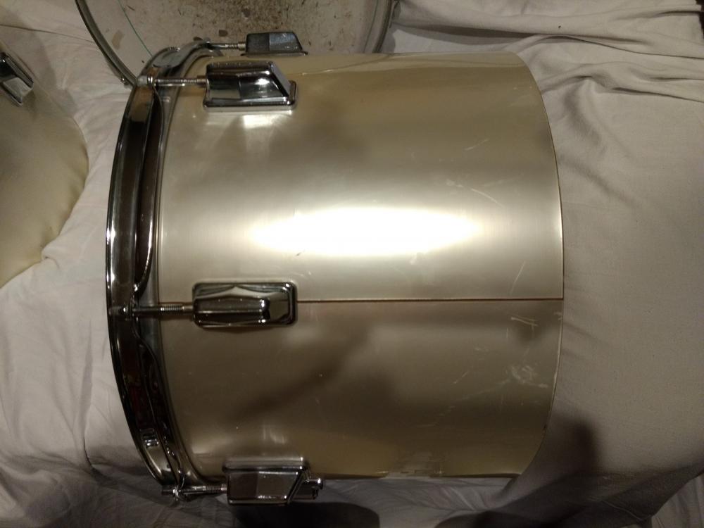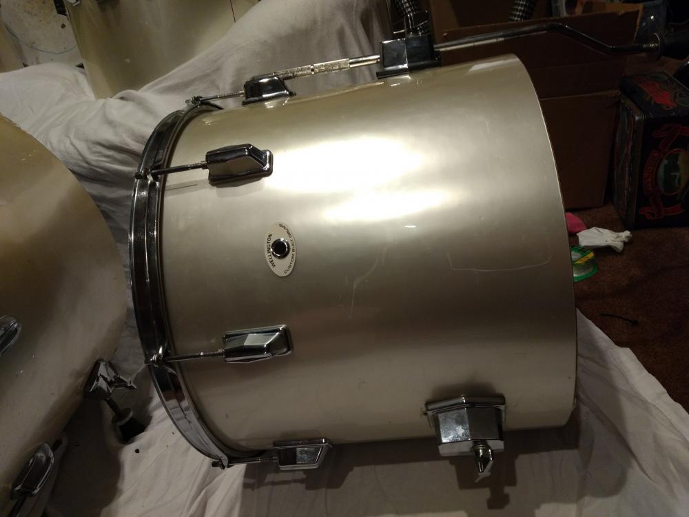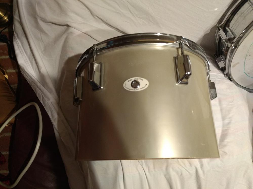 From what I can tell the Bass drum isn't a Blaemire drum as it's made out of wood and I think everything that Blaemire made (or was at least known for) was fiberglass. I would be willing to sell the toms separate if no one wants the Bass drum. The Bass drum isn't in quite as good of shape either and needs quite a bit of work. It's dimensions are, 14" deep and 21" diameter. I do think it's of note to say that all four of the drums have a tags that say WELLINGTON CUSTOM BUILT DRUMS on them.