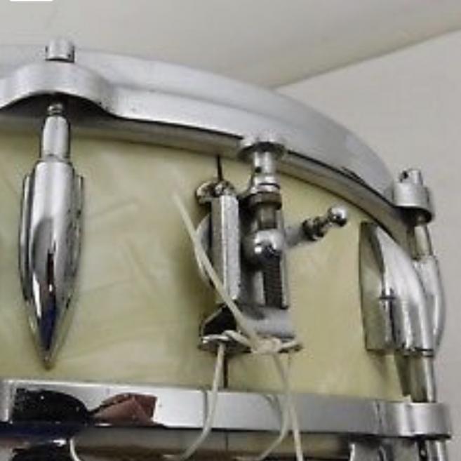I have an almost identical snare in the piccolo style, different white pearl finish with the exact same throw and butt and lugs. Was told the entire snare is all original when I bought it. There is also one on Reverb with the same hardware, just a different badge.