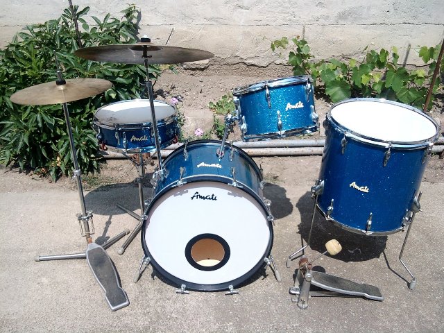 Here are some pics of my first drum kit ever, an Amati. I think I still have the kick pedal somewhere around here.Gilnar, you can see a set of Romanian 'Doina' drums in the last pic, the red ones. Like I said, not too interesting :)