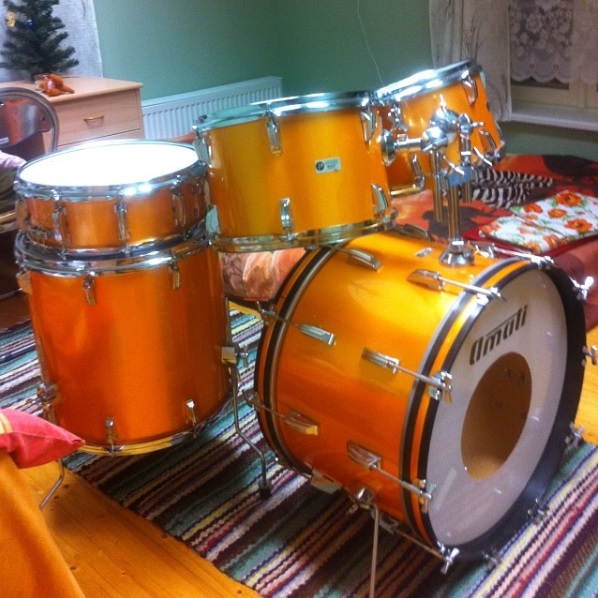 Here is my beautiful Amati Kraslice drum kit from 1982 in Gold Silk finish.