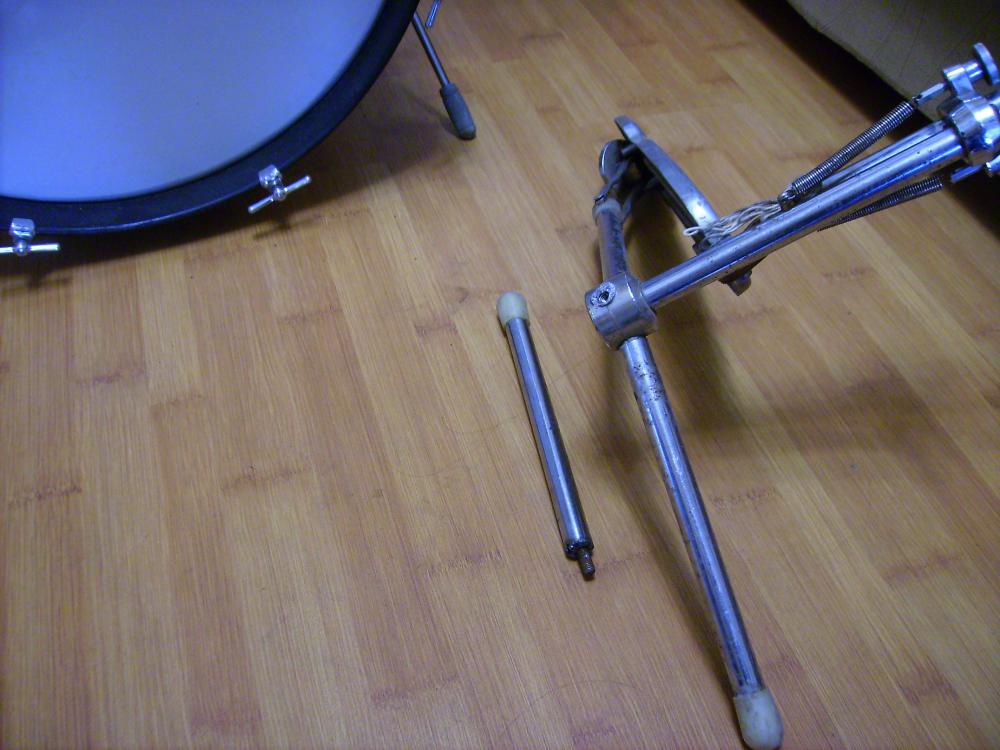 Near Kiev, I purchased an original rack for a dishes, a rack for a snare drum and a hi-hat rack. But when I got these racks, it turned out that the siluminous part of one leg of the hi-hat was broken, and the bolt was welded in an artisan way and the thread was cut at the base of the rack. I began to look again for the hi-hat rack.d