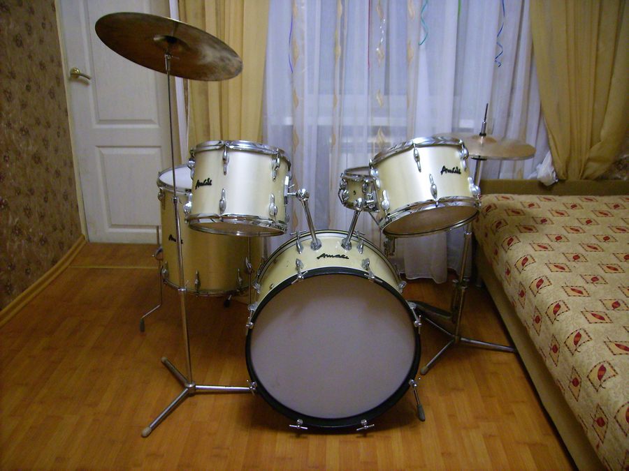 Something I did not manage to upload photos last time.The original was five drums, three plates and three plastika.Ostalnoy plastic was American proizvedeniya.Otsutstvovalo one leg of a large drum, and one leg was deformed. All the racks were from other producers of drums. There were no four mutes on the big drum and volumes.It was a transitional model from old amati to super-amati. The hardware was still from the old model and the drum cadre was thick-walled.