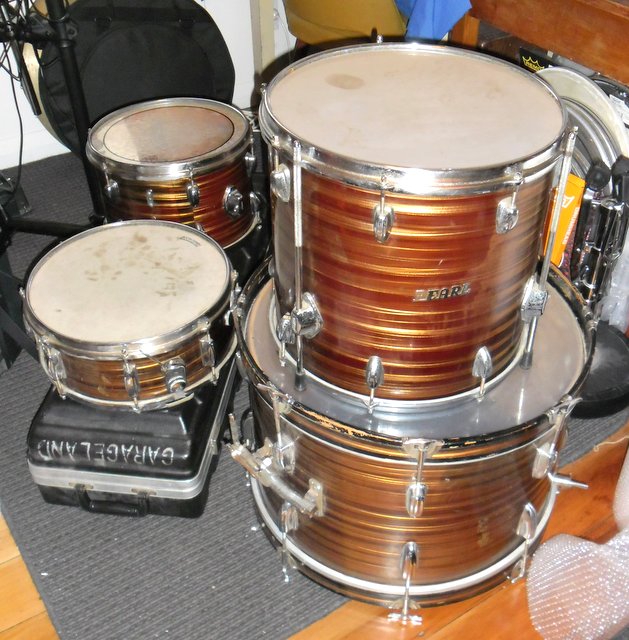 I just picked this up locally for a small price. 22/13/16/14sn. Interestingly the inner ply on all the drums is not lauan and the hoops are like non I've seen before.